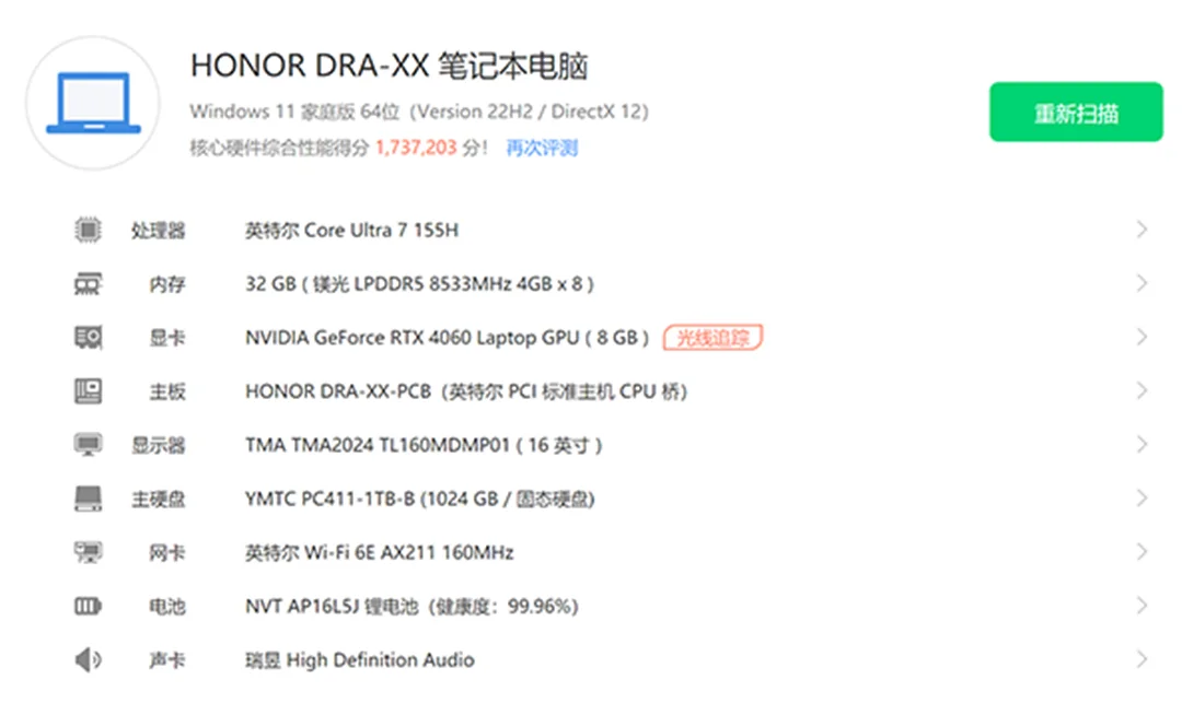 | 经检测 屏幕无划痕,机身轻微磨损,无维修,硬盘使用2047小时,激活日期25年5月21号。 | |
