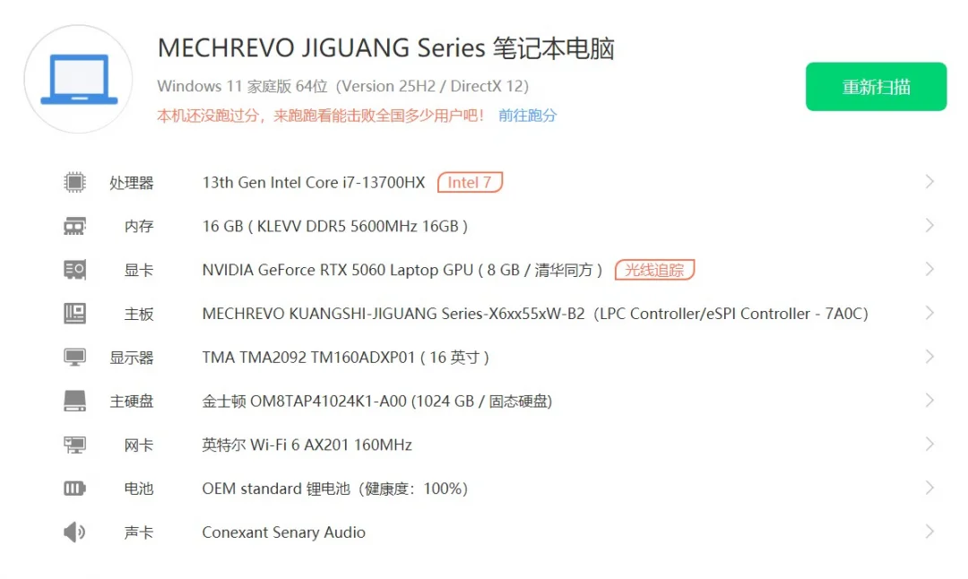 | 经检测 屏幕无划痕,机身轻微磨损,无维修,硬盘使用160小时,激活日期25年12月23号。 | |