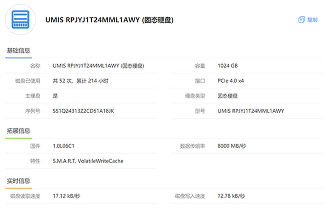 | 经检测 外观无磕碰划痕,无维修,硬盘使用214小时,激活日期25年7月18号。 | |
