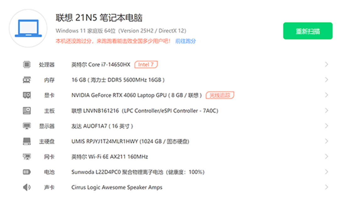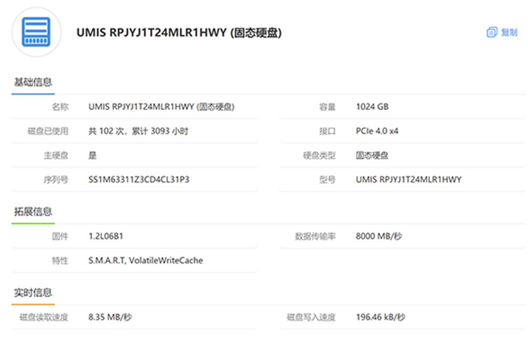 | 经检测 屏幕无划痕,机身划痕掉漆,无维修,硬盘使用3093小时,激活日期25年4月20号。 | |