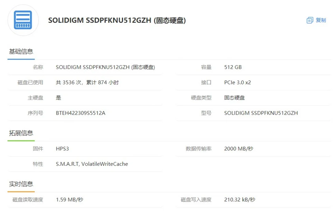 | 经检测 屏幕无划痕,机身轻微磨损,无维修,硬盘使用874小时,激活日期24年11月5号。 | |