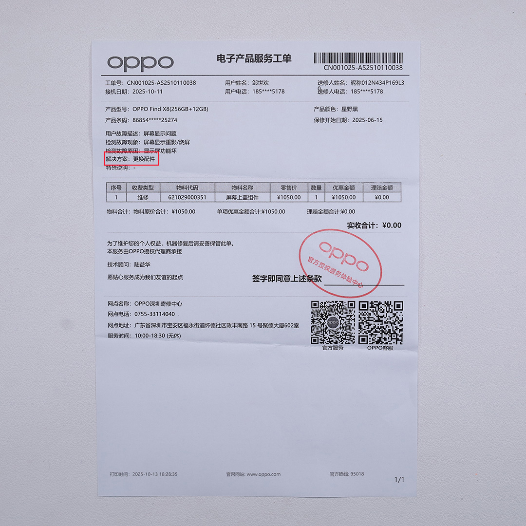 | 经检测 外观无磕碰划痕(屏幕带原厂膜),在官方售后换屏,激活日期25年6月19号。 | |